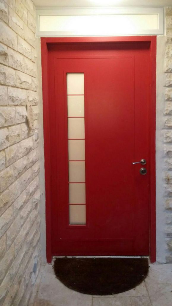 דלת כניסה אדומה בעלת נוכחות עוצמתית